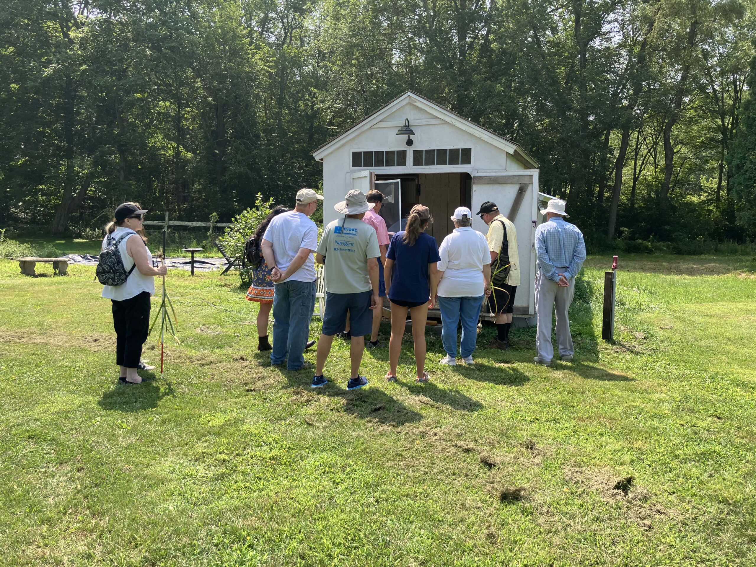 The group at the entrance to the chicken coop.