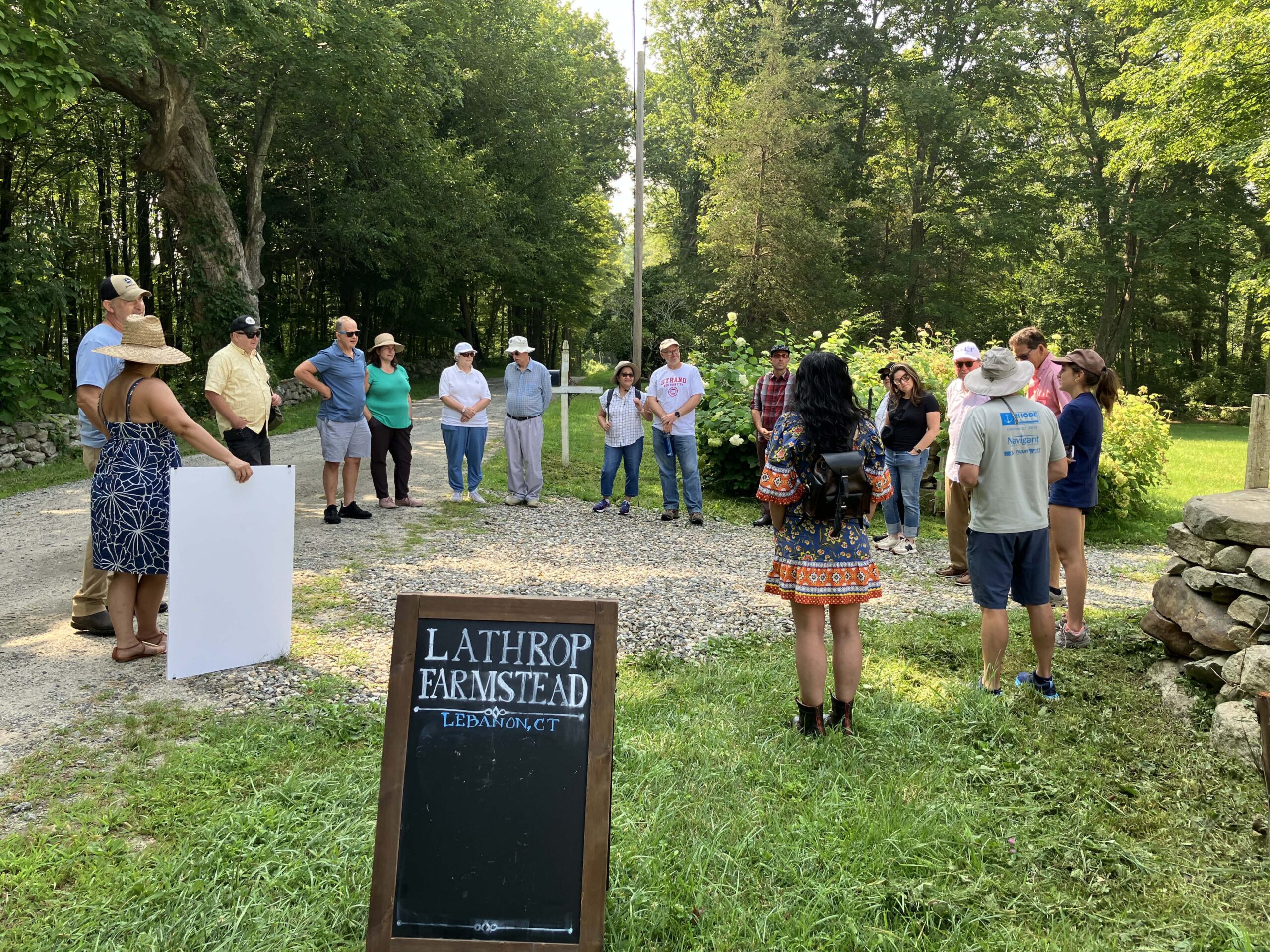 Council member Mia Colasuonno, co-owner of Lathrop Farm in Lebanon, provided a perfect first field trip! This compact, certified-organic operation grows herbs, vegetables, and fruits; produces its own honey and maple syrup; and makes available the eggs of its 30-plus chicken flock, representing about 10 varieties. The tour, led by Mia and co-owner Andrew Lathrop, included an introduction to the farm’s history; a walk through the growing fields; and refreshments at the tour’s conclusion that featured a variety of vegetables straight from the fields. Almost half the Council members, plus their guests, attended this enlivening event.