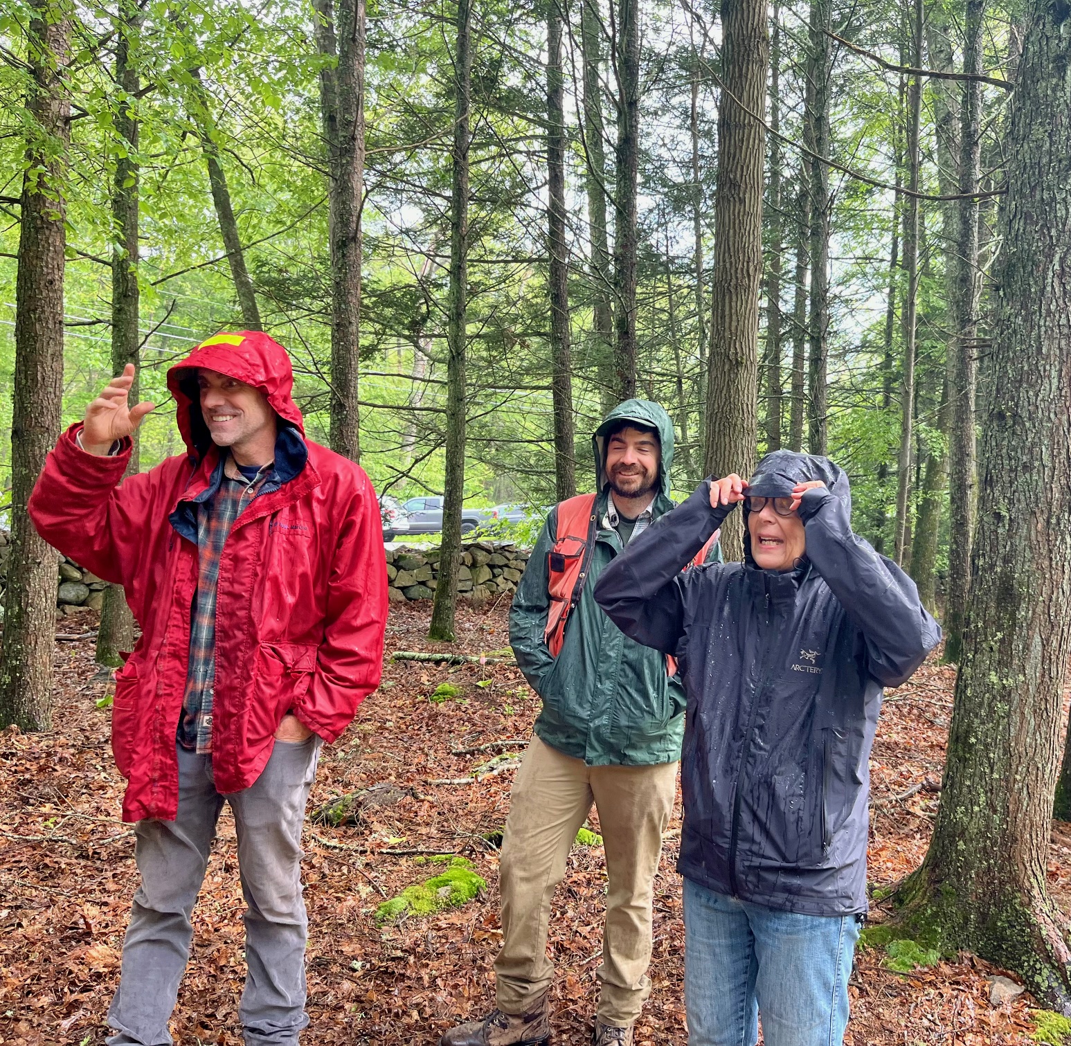 Toby Glaza, Frank Cervo, and Beth Sullivan get ready for more rain