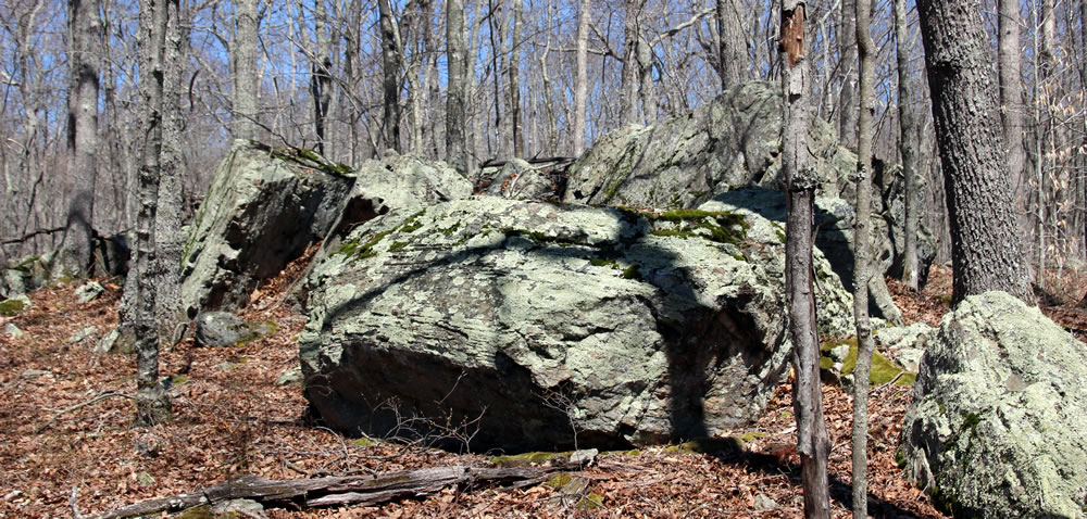 This 94 acre parcel is just a small portion of a very large and intact mature forest block known for its excellent birding opportunities. The area is rugged and rocky with great outcrops, formations, glacial erratics and stone walls. The west side trail is easy to moderate with some elevation change down to the pretty Lantern Brook and stream crossings in two areas.