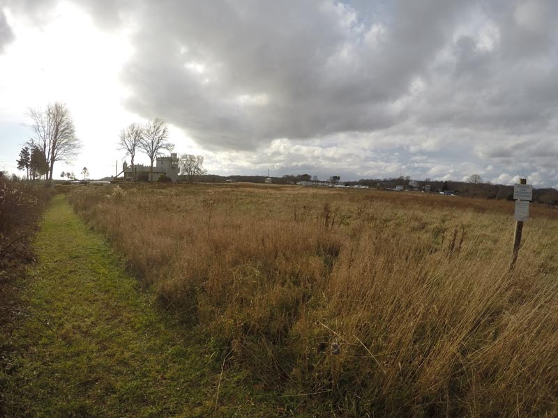 Located between Palmer Neck Road and Wequeteqock Cove, two large meadows and hedgerows create a perfect environment for grassland and thicket nesting birds (red-winged blackbirds, sparrows, and in the past bobolinks, as well as waterfowl and shorebirds when the fields are wet in the Fall and Spring).  Birdhouses attract bluebirds and tree swallows, as well as purple martins.  There are two entrance points through the stone wall, one to each meadow, with a connecting trail between them.  These are mowed grass paths that go around each meadow, offering great close-up views of the cove.  The total distance of the combined paths is approximately 0.91 miles.  Of note, portions of the grasslands are posted as closed during the bird nesting season from 1 April through 31 August.  Pets are permitted (dogs on leash).  Ticks can be a problem in the tall grasses; if you stick to the mowed trails at all times, this should not be an issue.