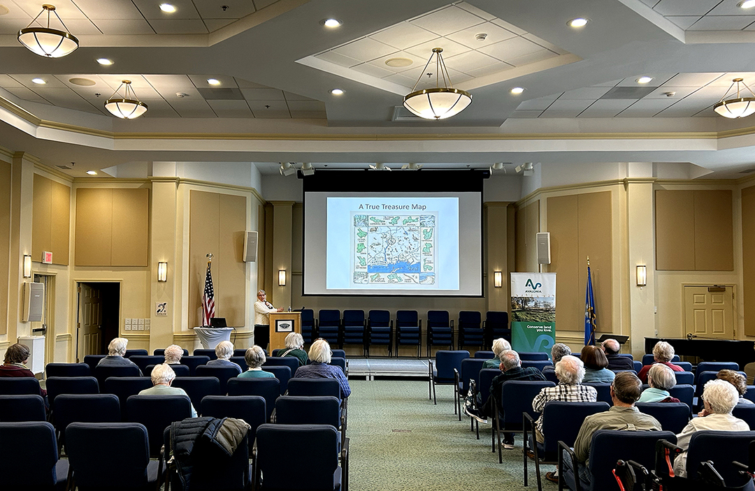Back in March, one of Avalonia’s stewards and a member of the Stonington Town Committee, Beth Sullivan, gave a talk at StoneRidge (one of Avalonia’s Business Members at the Defender level). During her discussion, she shared details on the work the Stonington Town Committee is doing. She also highlighted hiking opportunities available to Stonington residents and some of the wildlife and wildflowers that can be found on our preserves.