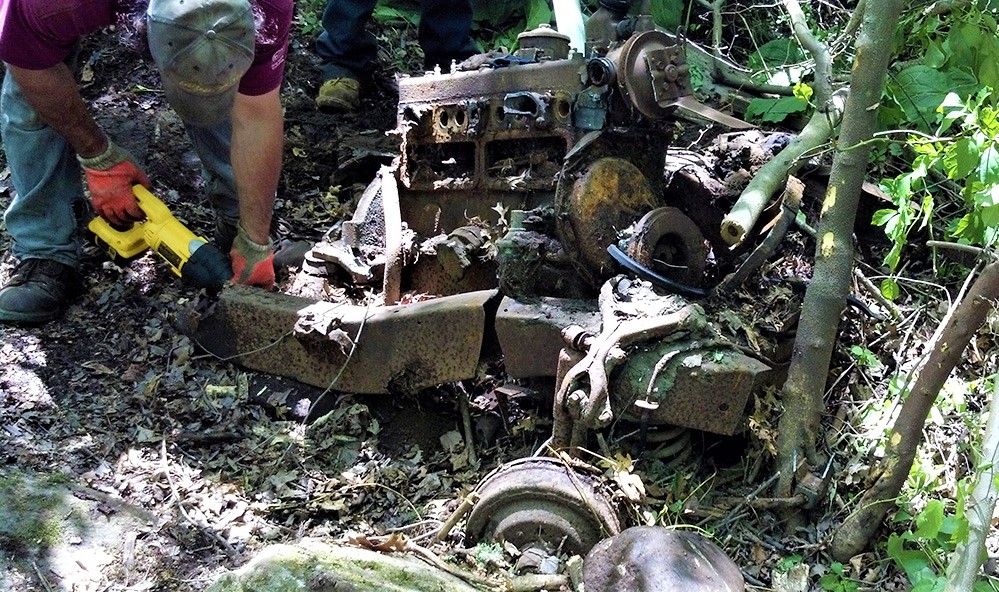 Our first question to Paul: Why were so many cars junked on old farmland? Paul explained that farmers routinely buried cars and abandoned other farm machinery on their properties. He’d dug out “old junkers” for people “hundreds of times.” As farmers sold their lands to developers or land trusts, demand for removing cars like Plymouth Rock increased. Although today prices have plunged, at that time selling scrap metal was a profitable business. Paul decided he’d charge to remove cars on land slated for development but do it for free on land to be protected by nonprofits like Avalonia.